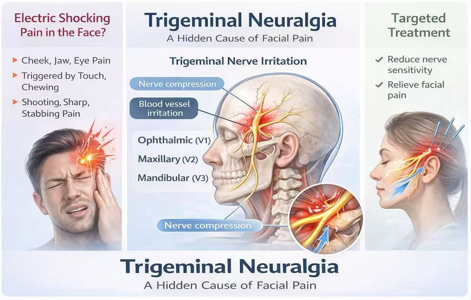 - Facial paralysis (Bell’s palsy), trigeminal neuralgia