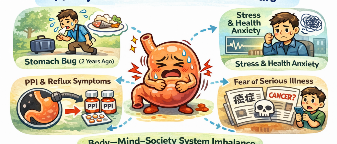Case 4 | Paroxysmal Epigastric Pain for 2 Years From an Acute Gastrointestinal Event to a Body–Mind–Society–Spirit System Imbalance ① Case Background Patient:Male, 30 years old, Kiwi, solid build, carpenter. Timeline of the Condition Approximately 2 years ago (initial event)During overseas travel, the patient developed sudden nausea, vomiting, diarrhea, and abdominal pain, a presentation consistent […]